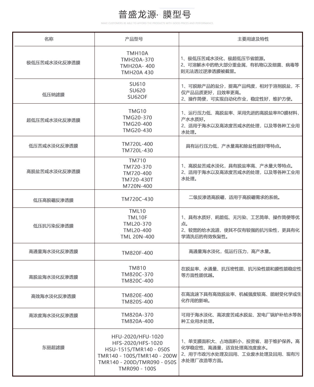 日本東麗膜的型號及技術(shù)參數(shù)