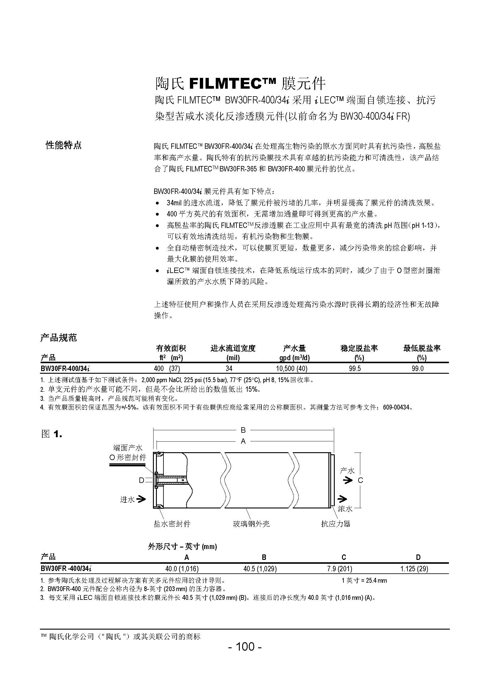 杜邦陶氏反滲透膜BW30FR-400/34i