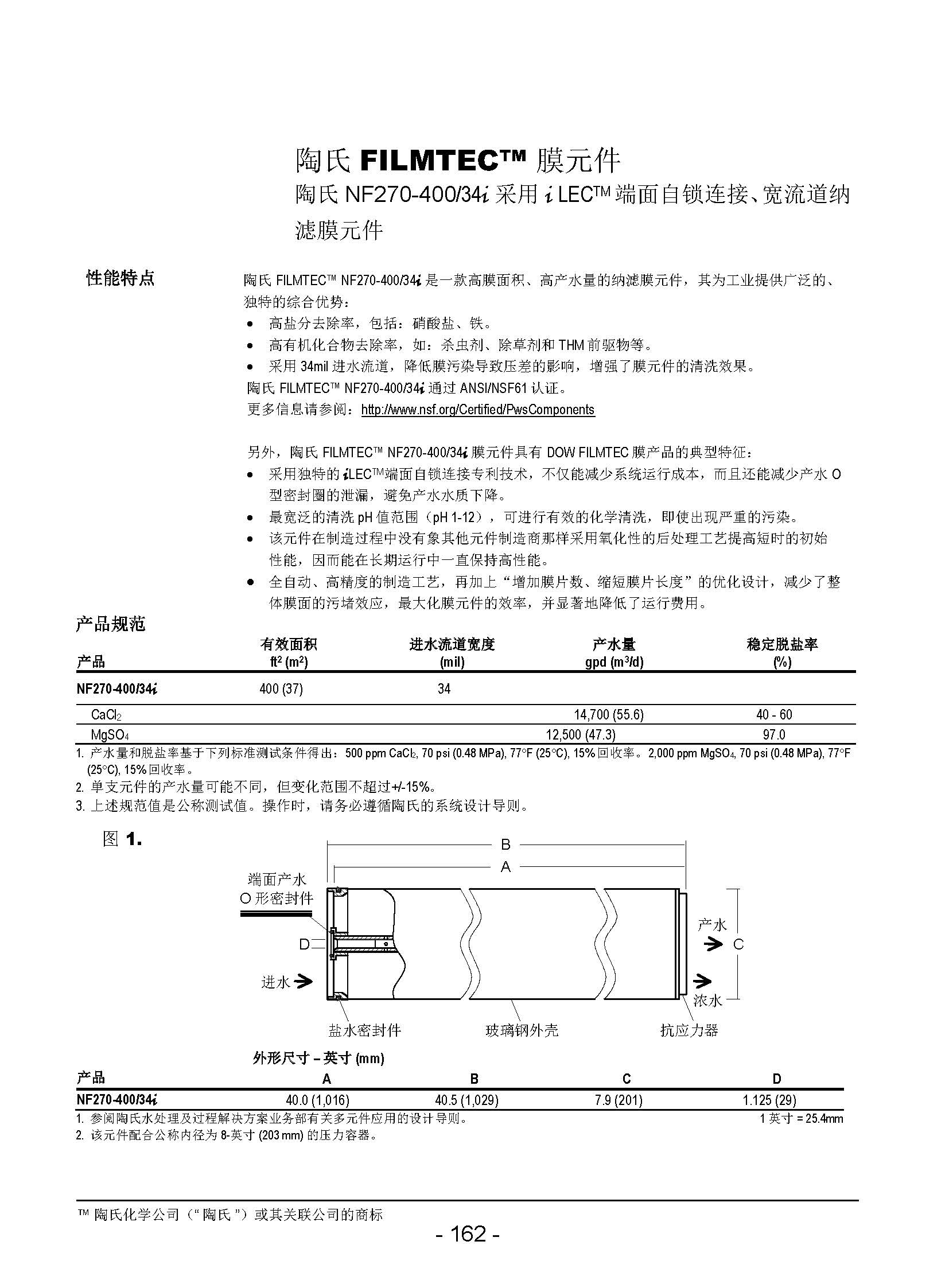 杜邦陶氏納濾膜NF270-400/34i
